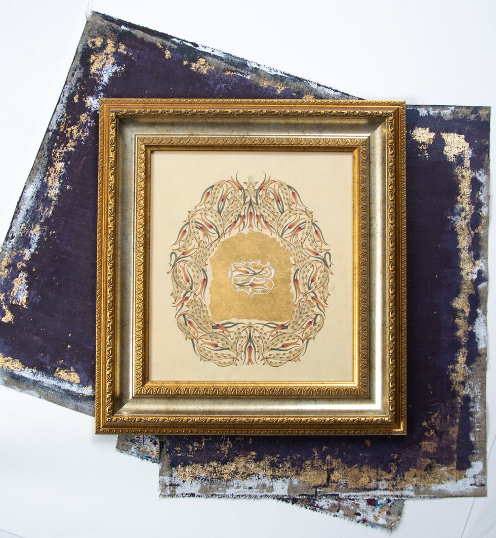 Illumination is an art of Ottoman/Turkish ornamentation and its origin and first samples extend to the Uyghur Turks. Its historical journey continued with the Ottoman Empire and it lived its golden period during the Empire's rule. In the 18th century with European influences, the rococo and baroque style was added to the traditional style of illumination. The gold leaves and gold powder obtained from them are the main material of the Illumination and its also named gilding for this main material. It has many unique forms and styles. Rumi, which is inspired by animal forms and Hatai, which is inspired by herbal forms create its general forms. Besides these forms, clouds, flowers, geometrical shapes, and the shaped lines are used for creating an Illumination design composition. With their different painting techniques, classical, baroque, rococo and naturalistic are the main styles of this art. Illumination still continues to be popular as an ornamental art and offers a visual feast around the world with different creative designs from different artists.